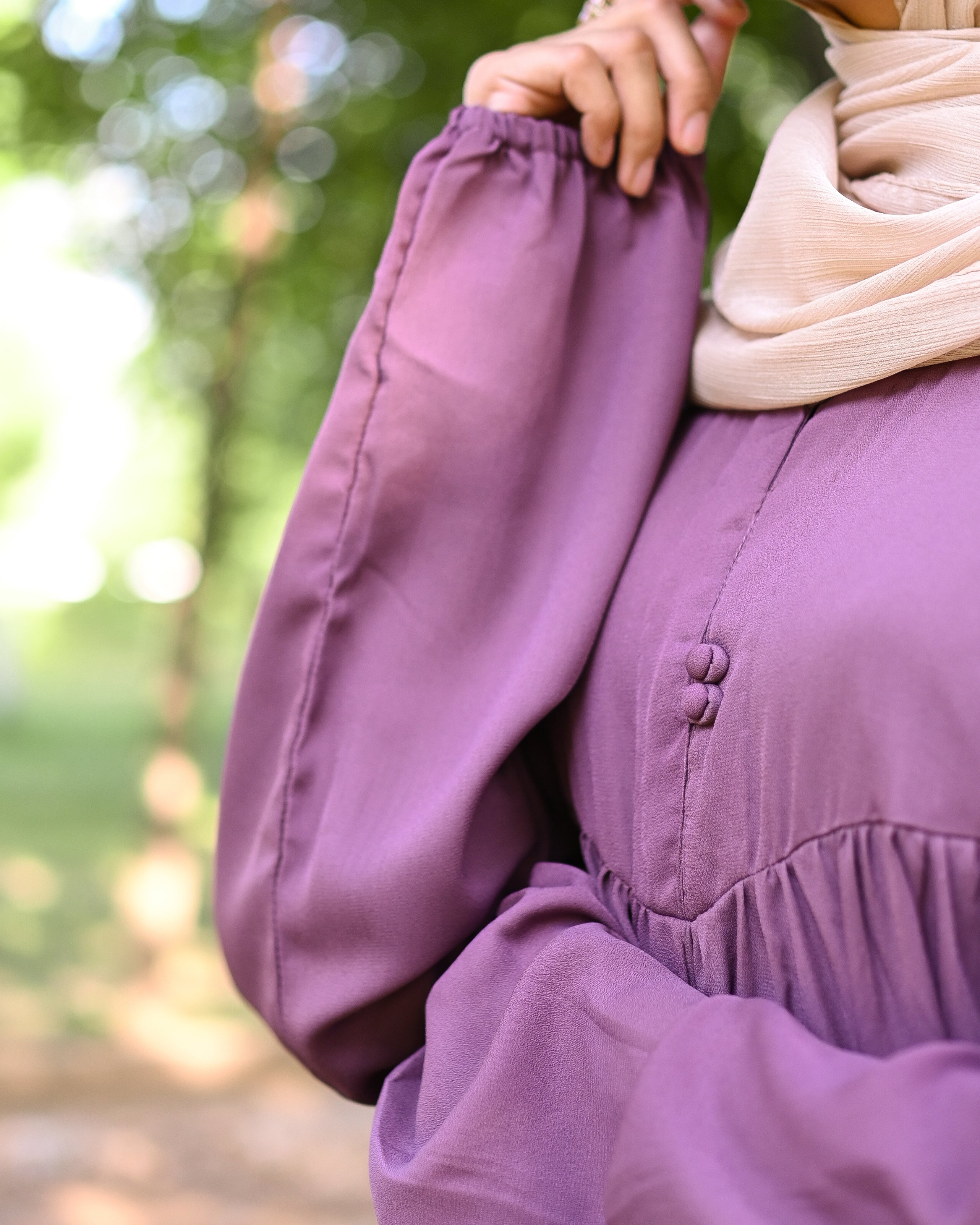 For Parties: The rich purple is perfect for any event. Wear it with a simple hijab. Add your favorite jewelry. You will look instantly elegant.