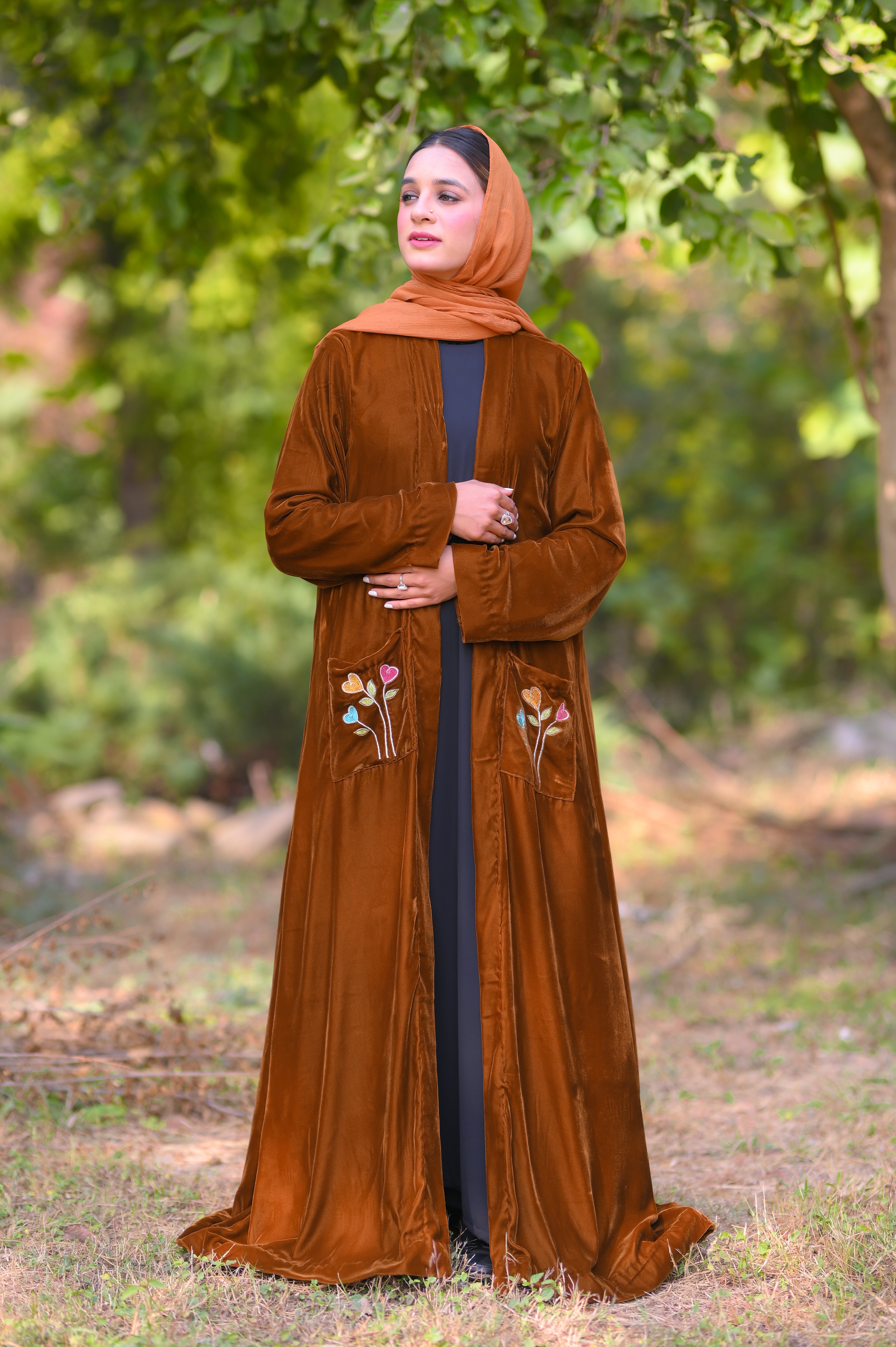 The Ayesha Aurum Abaya shines with that same love… gentle, warm, and beautifully regal for winter.